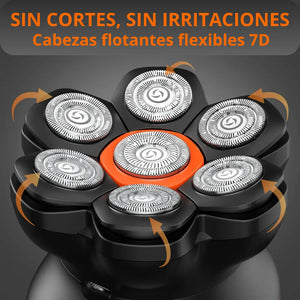 Con cabezales 7D rotativos, se adapta al contorno para lograr un rasurado uniforme y suave. Perfecta para mantener la cabeza limpia y elegante.