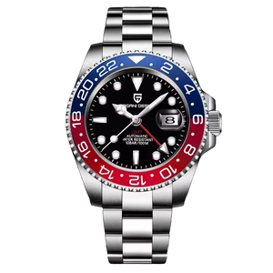 El Pagani Design Horizon Blue Red sorprende con su audaz combinación de azul y rojo, un diseño pensado para quienes buscan un estilo vibrante y moderno. Equipado con movimiento automático, ofrece precisión constante sin necesidad de batería, uniendo tradición relojera y estética contemporánea.