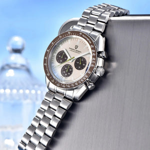 El Pagani Design Saturn Mission Brown rinde homenaje a la exploración espacial y a los tonos cálidos de Saturno. Inspirado en los anillos del planeta, su diseño combina un acabado marrón caramelo con reflejos metálicos que evocan el polvo estelar. Equipado con movimiento japonés Seiko VK63, ofrece una precisión impecable y confiabilidad superior sin comprometer la estética.